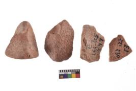 | Description / विवरण | A specimen of flake tool with prominent flaking marks. It made up of a short flakes with sides trimmed. It is rectangular in shaped. |