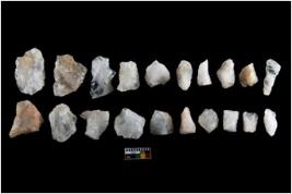 | Description / विवरण | There are 20 Flakes.Some are side retouched. Shapes and sizes vary among themselve.Most of them have sharp sides which looks like the result of retouching.Some are conical and thin, some are arc in shape. |