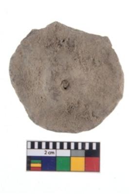 | Description / विवरण | A partially broken specimen of a grey ware terracotta wheel, it is roughly circular in shape and hubbed on the both sides. |