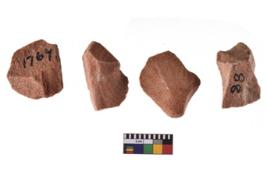 | Description / विवरण | A specimen of flake tool with prominent flaking marks. It made up of a short flakes with sides trimmed. It is rectangular in shaped. |