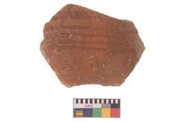| Description / विवरण | Specimen of red ware with decorative red pigment. |
