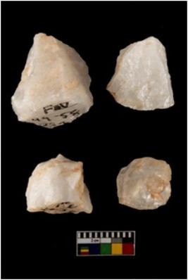 | Description / विवरण | There are n-4 of cores. All are made up of Quartz. All of them are intact fully fluted cores without any trace of crested ridge flakes. |