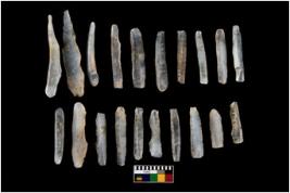 | Description / विवरण | There are 20 chalcedony blades which has parallel sided flakes along with retouching on both side and some are primary flakes, pen knives . |