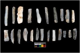 | Description / विवरण | There are 23 chalcedony blades which has parallel sided flakes along with retouching on both side and some are primary flakes, pen knives . |