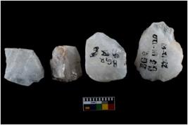 | Description / विवरण | Specimen of fluted cores having several broad fluted marks indicating the detached blades from it. |