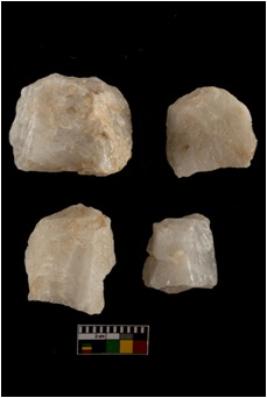 | Description / विवरण | There are n-4 of cores. All are made up of Quartz. All of them are intact fully fluted cores without any trace of crested ridge flakes. |