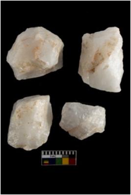 | Description / विवरण | There are n-4 of cores. All are made up of Quartz. All of them are intact fully fluted cores without any trace of crested ridge flakes. |