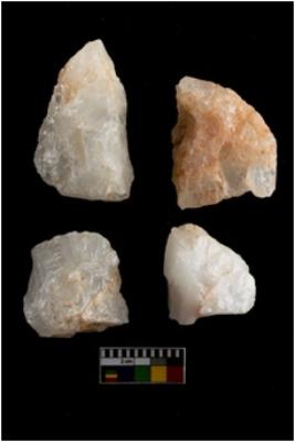 | Description / विवरण | There are n-4 of cores. All are made up of Quartz. All of them are intact fully fluted cores without any trace of crested ridge flakes. |