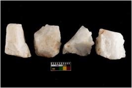 | Description / विवरण | There are 4 cores. All of them made of quartz. They show signs of flaking. All are small and flat cores with crested ridge flake. |