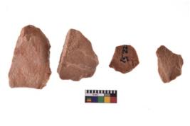 | Description / विवरण | A specimen of flake tool with prominent flaking marks. It made up of a short flakes with sides trimmed. It is rectangular in shaped. |