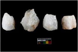 | Description / विवरण | Specimen of fluted cores having several broad fluted marks indicating the detached blades from it. |