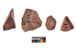 | Description / विवरण | A specimen of flake tool with prominent flaking marks. It made up of a short flakes with sides trimmed. It is rectangular in shaped. |