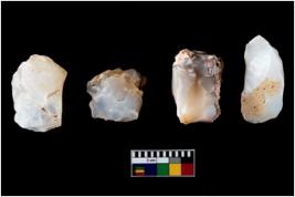 | Description / विवरण | Four utilised worked cores with sharp edges. Some of them are tapering at one end. |