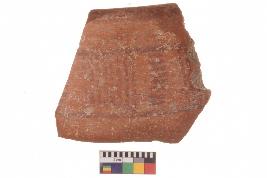 | Description / विवरण | Specimen of red ware with decorative geometric painting. |