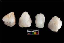 | Description / विवरण | There are n-4 of cores. All are made up of Quartz. All of them are intact fully fluted cores without any trace of crested ridge flakes. |