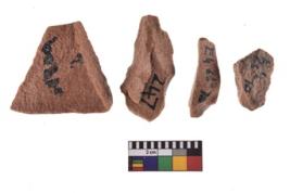 | Description / विवरण | A specimen of flake tool with prominent flaking marks. It made up of a short flakes with sides trimmed. It is rectangular in shaped. |