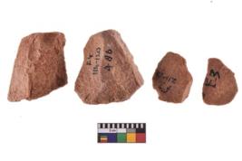 | Description / विवरण | A specimen of flake tool with prominent flaking marks. It made up of a short flakes with sides trimmed. It is rectangular in shaped. |