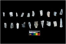 | Description / विवरण | There are 20 objects of which 12 appear as blades and the rest appear as debitage. The microliths are in good working condition with some of them having a few retouchings along the edges. The microliths have single to double flake scars along their surface. There are both blades and bladelets. There is no signs of damage. |