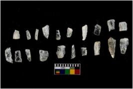 | Description / विवरण | There are n 20 objects of which 2 pen point,some appear as blades and the rest appear as debitage.. The microliths are in good working condition with some of them having a few side retouchings along the edges. The microliths have single to double flake scars along their surface. There are both blades and bladelets. |