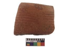 | Description / विवरण | Specimen of red ware with decorative red pigment. |
