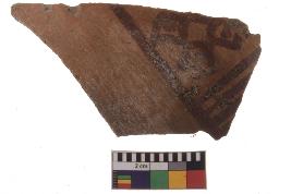 | Description / विवरण | Specimen of red ware with decorative geometric painting. |