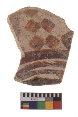 | Description / विवरण | Specimen of red ware with decorative geometric painting. |