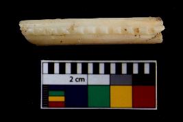 | Description / विवरण | Fragment of a decorated bangle. It is creamish in colour and rectangular in cross section |