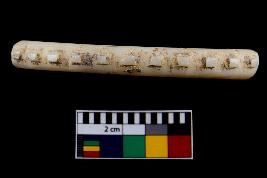 | Description / विवरण | Fragment of a decorated bangle. It is creamish in colour and rectangular in cross section |