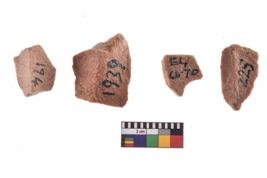 | Description / विवरण | A specimen of flake tool with prominent flaking marks. It made up of a short flakes with sides trimmed. It is rectangular in shaped. |
