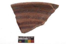 | Description / विवरण | Specimen of red ware with decorative red pigment. |