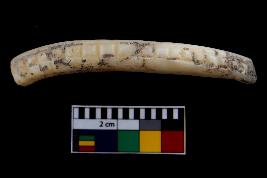 | Description / विवरण | Fragment of a decorated bangle. It is creamish in colour and rectangular in cross section |