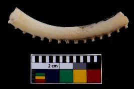 | Description / विवरण | Fragment of a decorated bangle. It is creamish in colour and rectangular in cross section |