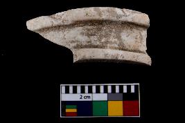 | Description / विवरण | Fragment of a decorated bangle. It is creamish in colour and rectangular in cross section |