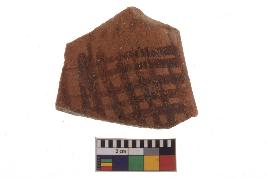 | Description / विवरण | Specimen of red ware with decorative geometric Net Pattern painting. |
