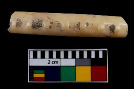 | Description / विवरण | Fragment of an undecorated bangle. It is creamish in colour and rectangular in cross section |