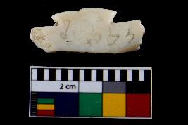 | Description / विवरण | Fragment of a decorated bangle. It is creamish in colour and rectangular in cross section |