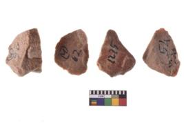 | Description / विवरण | A specimen of flake tool with prominent flaking marks. It made up of a short flakes with sides trimmed. It is rectangular in shaped. |