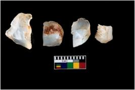 | Description / विवरण | Four utilised worked cores with sharp edges. Flakes have been removed from few sides. |