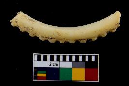 | Description / विवरण | Fragment of a decorated bangle. It is creamish in colour and rectangular in cross section |