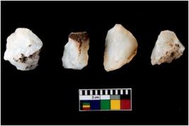 | Description / विवरण | Four utilised worked cores with sharp edges. Flakes have been removed from few sides. |