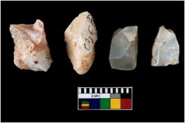 | Description / विवरण | Four utilised worked cores with sharp edges. Flakes have been removed from few sides. |