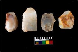 | Description / विवरण | Four utilised worked cores with sharp edges. Flakes have been removed from few sides. |