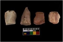 | Description / विवरण | There are n-4 of cores. All are made up of Quartz. All of them are intact fully fluted cores without any trace of crested ridge flakes. |