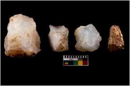 | Description / विवरण | There are n-4 intact flake cores. There are multi directional irregular scar pattern on both dorsal and ventral face of the cores. |