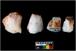| Description / विवरण | Four utilised worked cores with sharp edges. Flakes have been removed from few sides. |