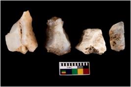 | Description / विवरण | There are n-4 intact flake cores. Out of them 3 are made up of Chalcedony and 1 is made up of Chert. There are multi directional irregular scar pattern on both dorsal and ventral face of the cores. |