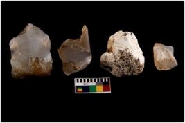 | Description / विवरण | There are n-4 intact flake cores. Out of them 3 are made up of Chalcedony and 1 is made up of Chert. There are multi directional irregular scar pattern on both dorsal and ventral face of the cores. |