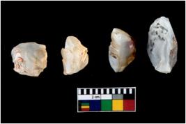 | Description / विवरण | Four utilised worked cores with sharp edges. Flakes have been removed from few sides. |