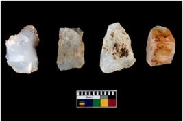 | Description / विवरण | Four utilised worked cores with sharp edges. Flakes have been removed from few sides. |