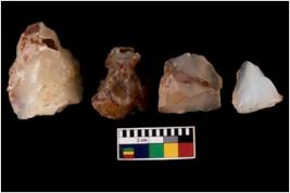 | Description / विवरण | There are n-4 intact flake cores. There are multi directional irregular scar pattern on both dorsal and ventral face of the cores. |